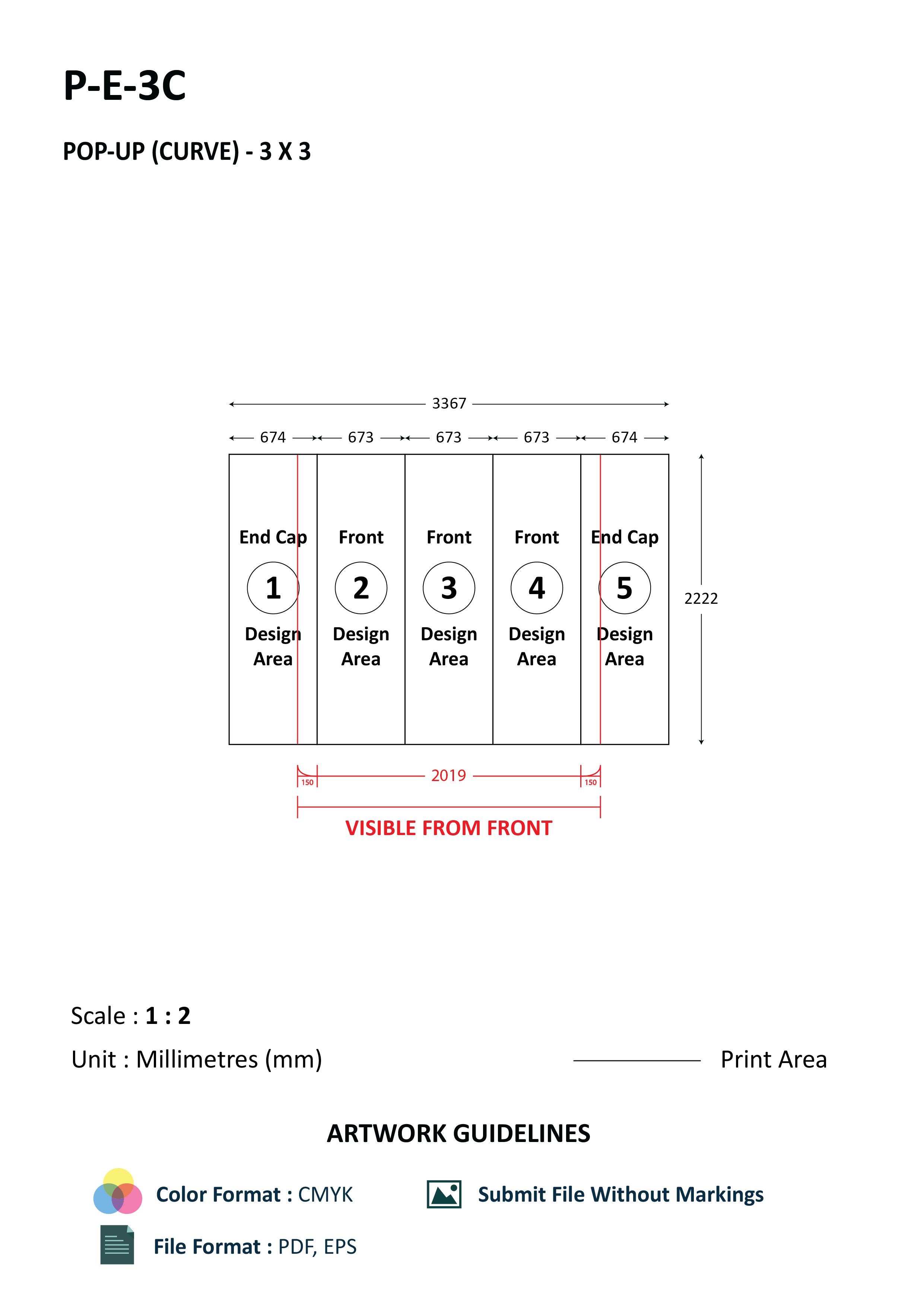 Kindly avoid logos and texts on the first and last panel (Semi-curve Panel at 2 sides) as half of the panel with curl backward.